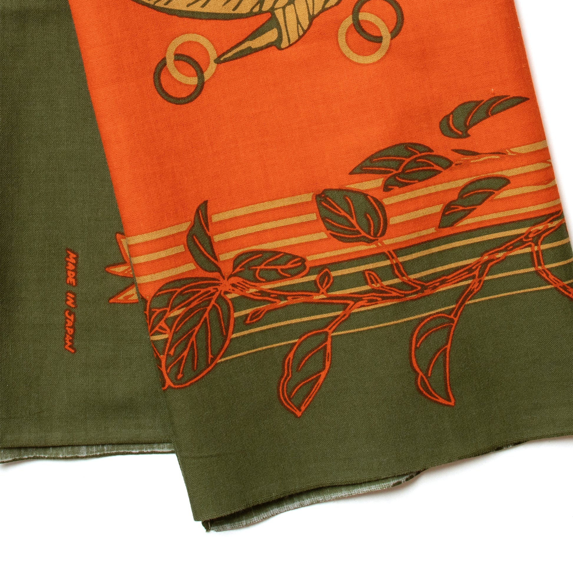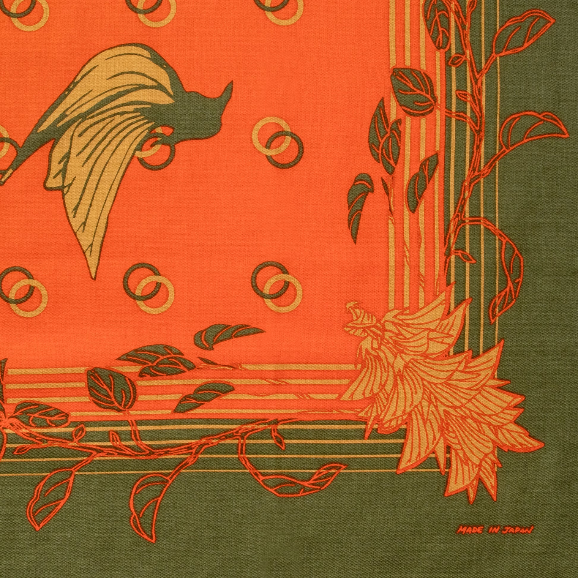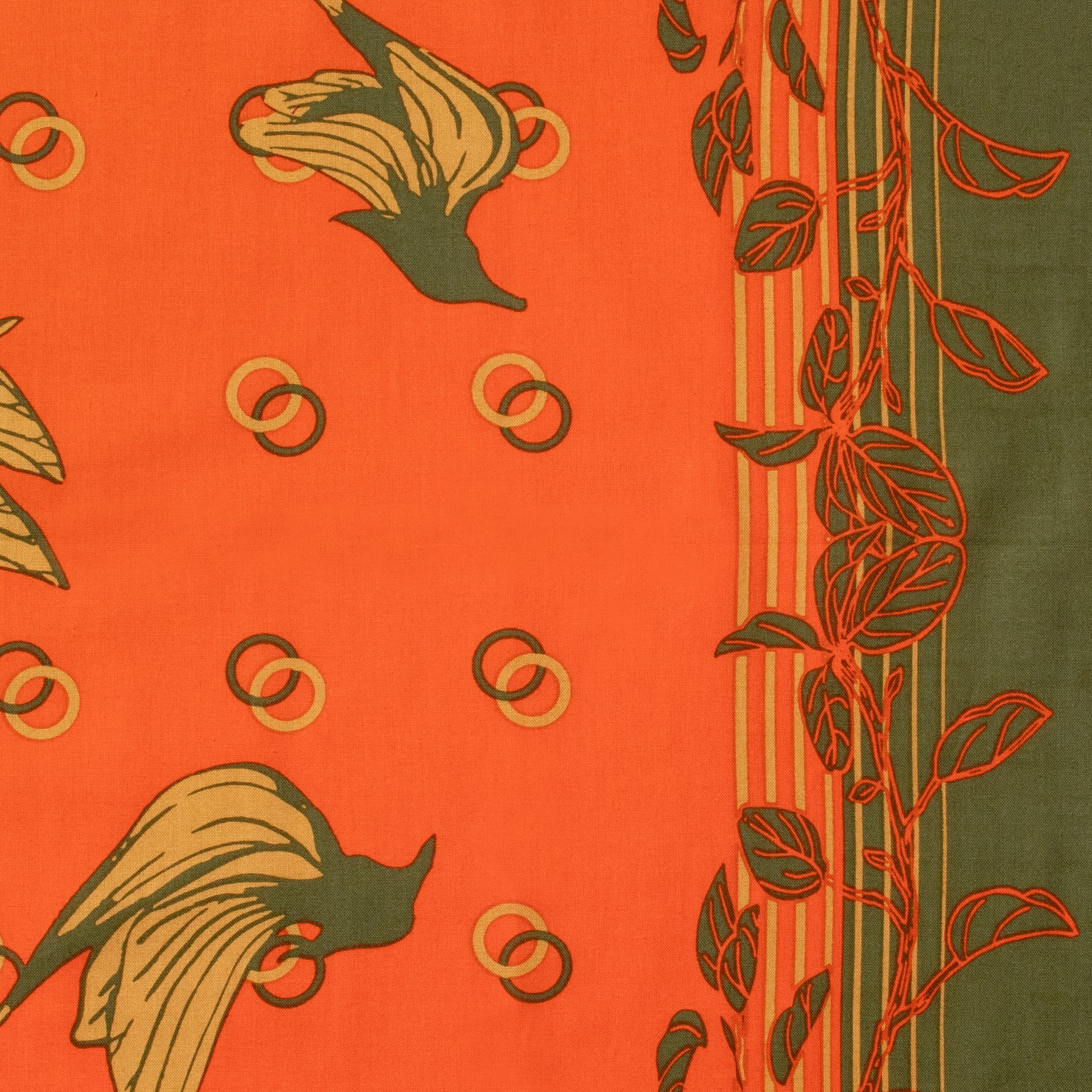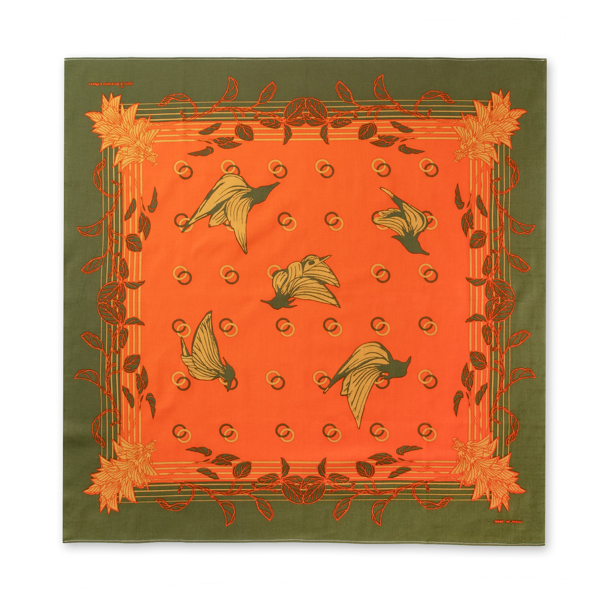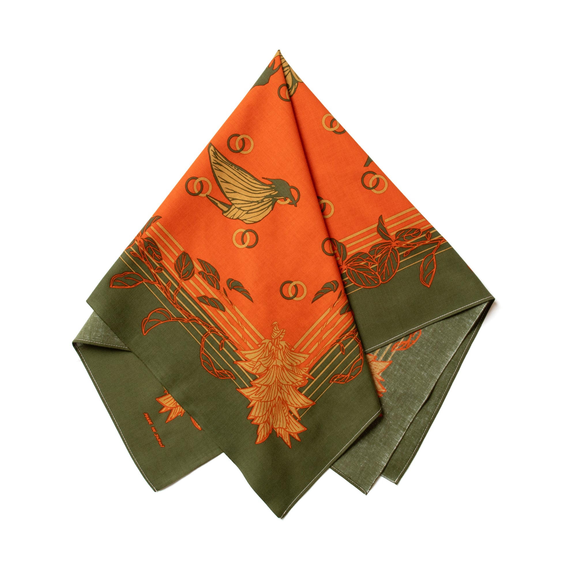 This curious design is based upon the meme-able plant Crotalaria cunninghamii. Also known by the common name of parrot pea, green bird flower etc etc etc. It is native to Australia and blooms the green flowers from January to April. It is a plant that has had some interesting attention on social media lately. Due to its resemblance to a bird, most people think this is a miracle. To a botanist however, this is a pretty normal Fabaceae flower/fruit structure. It is an interesting and beautiful plant. It also happens to be a great starting point for doing a design collaboration with PPHH, based in Melbourne Australia. Starting with a mutual fondness for bandannas and plants, we used their store’s color scheme as the palette and their location as the design inspiration. Crotalaria flowers and leaves, with symbolic rings of collaboration and commitment. Funky, cool green and orange color scheme that works all year everyday. We hope all our customers will enjoy this design and its unique Aussie twist on the bandanna.